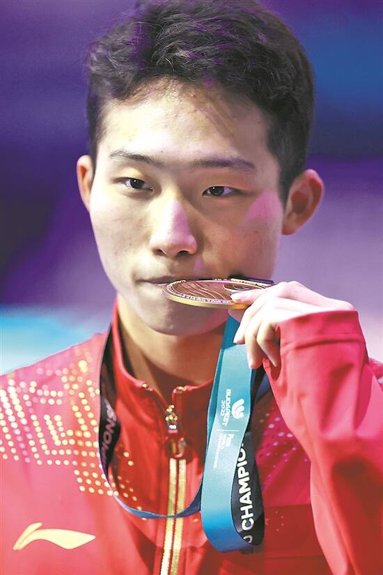 这是王宗源本届世锦赛夺得的第三枚金牌。此前,他和曹缘联手夺得男子双人三米板金牌,又力压曹缘夺得男子单人三米板金牌。王宗源成为单届世锦赛拿到三枚跳水金牌的历史第一人,同时他也是第二位卫冕男子一米板冠军的运动员。