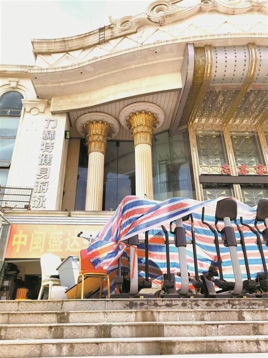 6月30日,记者来到丽江实业公司,发现四周主路均被封闭,在其左后侧留有一条通道。在侯先生的健身房前,只见台阶上堆积着大量体育健身器材以及柜子、桌椅等物品。有的用三色塑料布遮盖,有的则完全裸露在外面,从现场情况来看,不少器材已损坏,到处是各种设备的零部件,散落在四周。