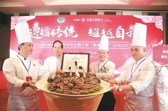 羊城晚报讯 记者马思泳报道:鲍鱼、鸡、百香果、牛油果……这些日常生活中常见的食材和水果在粤菜师傅的巧手下被烹煮出新意。7月5日,由广东20家知名粤菜餐饮品牌联袂发布的20道首创、首发粤菜,在广东烹饪协会主办的第四届岭南粤菜发布会相继亮相,“香酥葱烧鲍鱼”“牛油果鱼茸羹”“咕噜脆皮菌菇球”“黄皮酱碌鸡”等20道具有创意的粤菜将在20家餐厅上市。