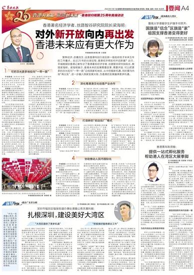 今年是香港回归祖国25周年,在陈贤翰看来,这25年间,香港发生了许多变化,但始终不变的是祖国的支持,祖国永远是香港的坚强后盾。陈贤翰说:“国家出台了一系列政策支持港澳青年在大湾区创业就业生活,支持力度很大,我希望港澳青年都可以充分抓住黄金机遇,深入了解内地市场和产业发展,以粤港澳大湾区为平台,充分发挥自身优势实现成长。”