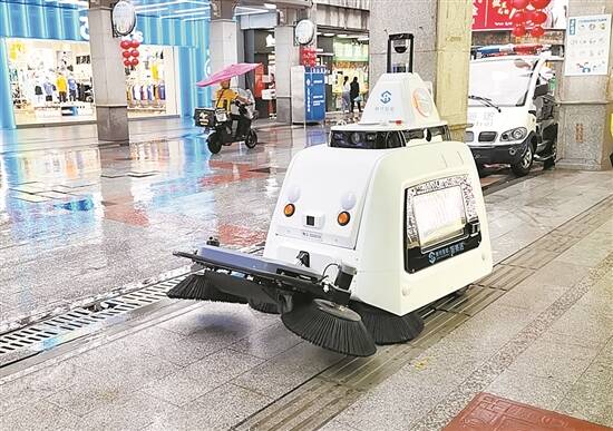 记者了解到,环卫机器人是一款由智能设备终端和智能调度管理平台联合打造的无人驾驶清扫车,可通过调度系统高效自主完成室外大范围清扫作业,实现覆盖式清扫、区域化清扫。只要设置好路线,它就会按照路径设置完成清扫任务。不仅如此,它还能“说话”,带有语音功能,作业时可以避开行人,且不惧高温酷暑。