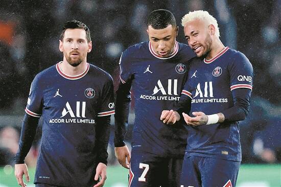 大巴黎三巨头梅西(左)、姆巴佩(中)、内马尔 图/视觉中国