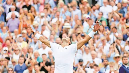 本届温网,纳达尔为观众奉献了一场史诗级别的比赛。腹部受伤的纳达尔鏖战4个半小时,最终靠决胜盘抢十险胜弗里茨,总比分3比2取胜晋级。中途,纳达尔2次申请医疗暂停,就连父亲都希望纳达尔直接退赛。但是,纳达尔不放弃,继续返回赛场,最终取得胜利。另外一场男单比赛,克耶高斯战胜了智利选手加林,首次闯进温网4强,接下来,他将与纳达尔争夺决赛的入场券。