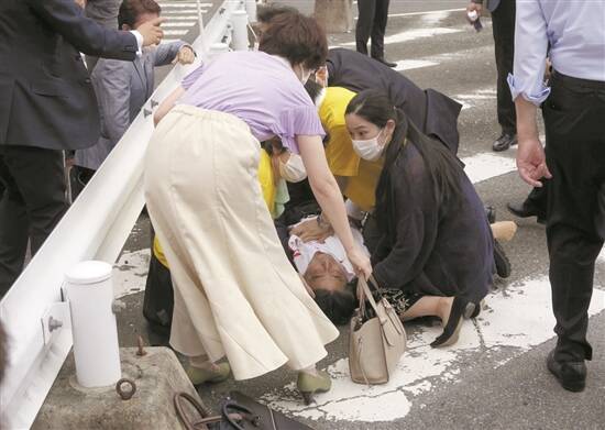 安倍晋三在奈良发表演讲时中枪,躺在街头 新华社/美联发