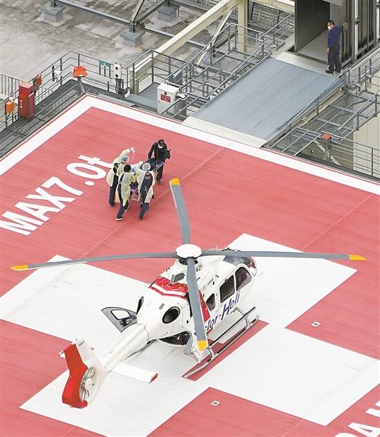 安倍晋三遭枪击后,由医用直升机转运至奈良县一家医院 新华社/共同社发