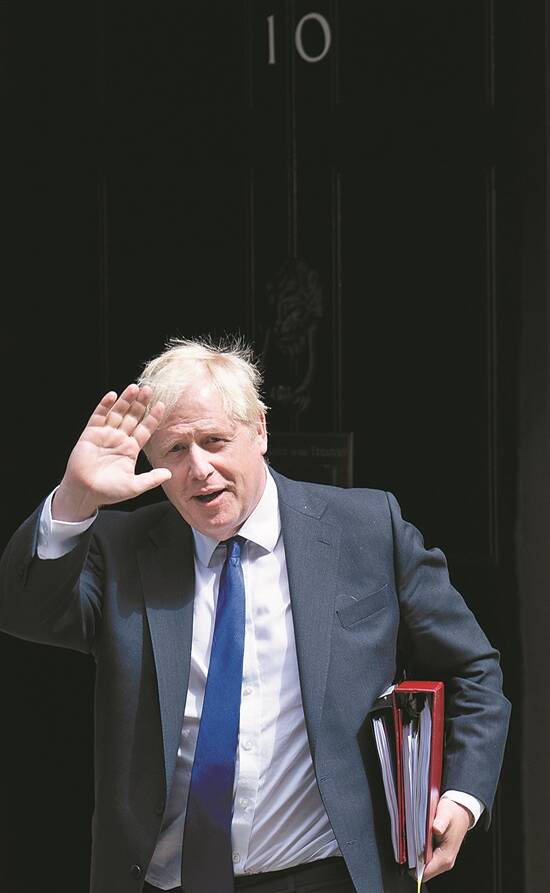约翰逊:英国首相鲍里斯·约翰逊7日宣布辞去保守党党首和首相职务,将留任至新领导人产生。从祸起“派对门”被穷追猛打,到遭政府官员以“辞职潮”逼宫,身陷多重危机、四面楚歌的约翰逊终究兵败如山倒。 视觉中国供图