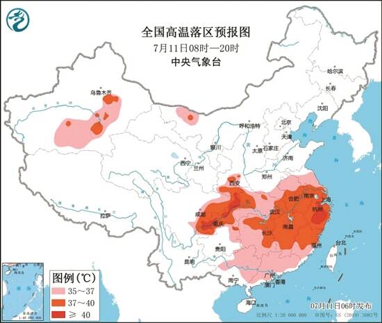 根据中央气象台11日的中期天气预报,未来一周全国大部分地区都会出现37℃的高温天气,江苏南部、上海北部、浙江南部、四川盆地东南部、重庆中西部和北部局地可达40℃以上。