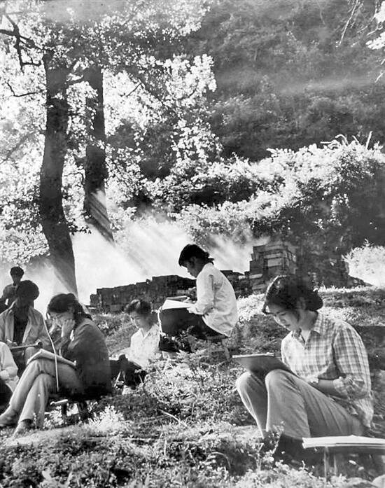 学院学生是全国各地来的,最远的有来自东北、新疆等边陲之地。我在此读书仅三年(包括实习三个月),结交了一大批同学好友。在校期间,我除了认真学习本专业的各项功课、参加建校劳动外,还担任过班长,组织参与过一些班级活动,有一次曾组织同学们自带粮油菜,徒步远足到60里外九嶷山的主峰三分石。此外,我还组织过班上同学参观玉琯岩等地,记得玉琯岩石壁上镌刻的“九疑山”三个大字,是宋代人“未冠能文”的方信孺所题写,而东汉名臣、文学家、书法家蔡邕题写的《九疑山铭》亦赫然于璧。此处后来经考古发现汉代的舜帝庙遗址,作为珍贵文物遗址保护起来,却已是我们离校若干年后的事了。
