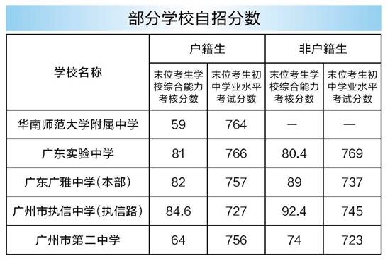 不少家长将各校自招显示的“末位考生”中考成绩作为该校录取分数线“风向标”。例如,华南师范大学附属中学自招显示,末位考生学校综合能力考核59分,末位考生中考成绩764分,如何理解?