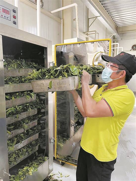 红炉烹茶、悬壶高冲,在茶汤中,曲卷紧致的茶叶慢慢舒展,细品一口,只觉清香扑鼻,过一会后又感觉喉底回甘。这正是由“香中之王”——奇楠沉香的叶子发酵制作而成的茶叶,能促进胃肠蠕动、帮助睡眠,受到不少注重养生人士的喜爱。