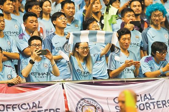 2019年英超亚洲杯决赛现场为曼城助威的中国球迷 图/视觉中国