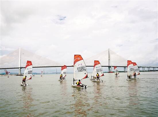 汕头近年通过举办水上运动赛事,助力海上旅游文化产业发展。图为海湾少年帆船巡游活动 羊城晚报记者 蚁璐雅 摄