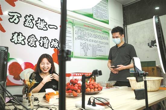 不到几年时间,通过活泼的直播带货、原创设计的“增城荔枝”包装等新颖的营销方式,他们将增城荔枝的品牌标签挂满全省,推向全国。凭借强大的冷链物流和互联网卖货思维,今年荔枝销售超1000吨,订单量比往年增长100%,带动增城周边1000亩荔枝林一起卖货,也给许多村民提供了就业岗位。