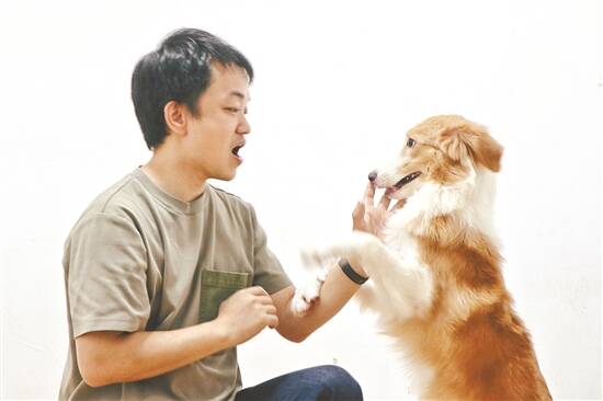 驯犬师何卫与狗狗互动