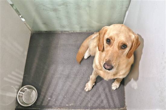 在位于广州市海珠区的巨小萌宠物行为心理中心,一只名为“豆腐”的阿拉斯加犬正在上课,它卧在行军床上眼巴巴望着不远处坐在沙发上的主人,但这回它没有像往常一样脱离控制朝主人扑过去——因为一旁的驯犬师没有下达可以行动的指令。