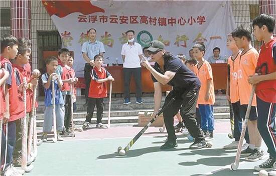 云浮市曲棍球项目的发源地在高村镇,现在已经成为云浮市青少年体育运动的明星项目。本次活动云浮体彩中心向高村小学资助了一批专业曲棍球运动器材,还邀请了原国家女子曲棍球队主教练、广东省男女子曲棍球队主教练、国家级教练员刘守忠到现场指导高村小学学生开展曲棍球业余体育训练,把规范的体育教育项目专业教学带进校园,把体育带来的健康快乐送给孩子。