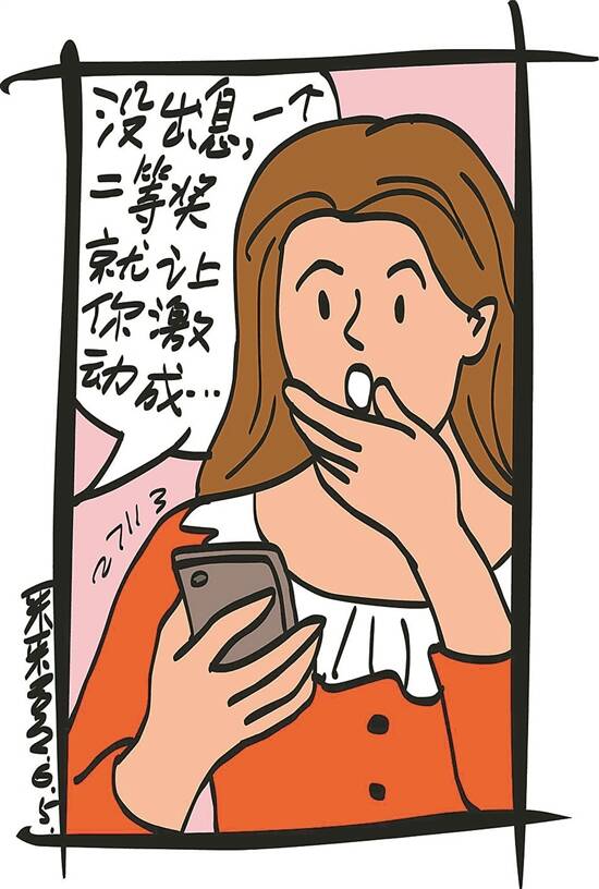 宋小小“扑哧”一声被逗笑了,说:“谢谢你啊,我本来只买1注的,是你劝我双倍投。”
