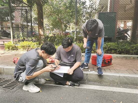 工程测量是实打实的户外作业,是背着几十斤的机器在外的“体力活”,也是极为考察细致耐心的“脑力活”。队伍指导教师章琼说,当前他们主要备战三大模块,分别是水准测量、导线测量和数字测图。学校校园路面平坦,训练导线测量在校内进行即可,但遇到水准测量这样需要地面高差的项目,师生一行要去从化风云岭训练。无论阴晴寒暑,上山入地,都是常事。