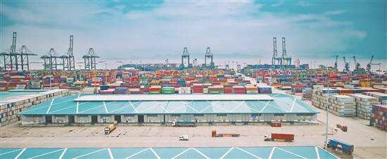 广州港南沙港区目前已建成集装箱深水泊位16个,年通过能力超2000万标准箱(资料图) 羊城晚报记者 何奔 摄