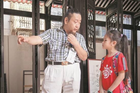 一许氏后人为女儿讲解许氏家族历史