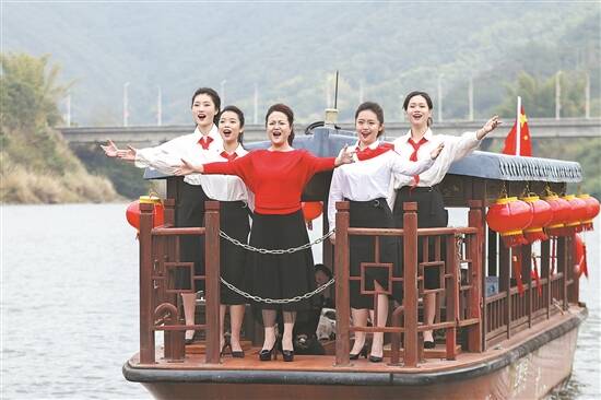 梅州充分利用红色资源,大力发展红色旅游。图为在中央红色交通线梅州大埔汀江上举办的文化活动 通讯员供图