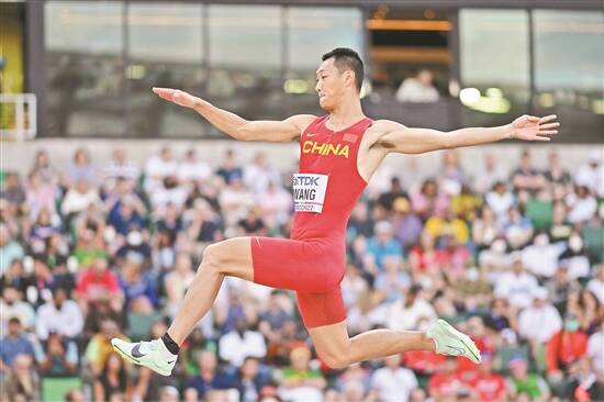 7月17日,王嘉男的“时间轴”注定要增加一条足以载入中国田径史册的记录:在2022年世界田径锦标赛男子跳远决赛中,最后一跳定乾坤,以8米36的成绩从第五名逆袭上演“绝杀”,拿到中国田径队在尤金世锦赛上的首枚金牌,并一举创造多项纪录——成为田径世锦赛史上首位获得男子跳远冠军的亚洲选手,也是中国第一位在世锦赛上赢得田赛项目冠军的男子运动员,更是继刘翔、王浩、陈定之后,第四位在世锦赛上赢得金牌的中国男选手。