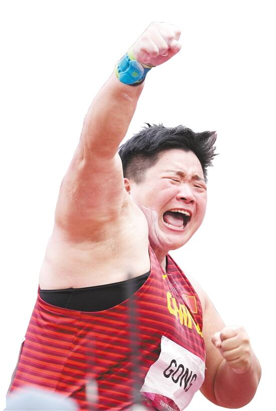巩立姣在东京奥运会女子铅球决赛上庆祝胜利