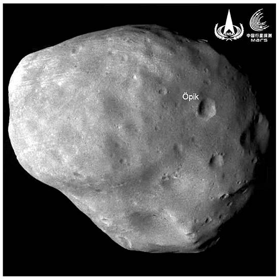 该图像是天问一号火星环绕器携带的高分辨率相机拍摄的。图像中火卫一看上去像极了“土豆”,表面布满了大大小小形状不一的陨石坑,形貌完整、细节清晰,首次近距离获取了火卫一的第一手科学数据。为科学家开展火卫一地形地貌、运行规律等研究提供了珍贵数据,为我国行星探测工程积累了宝贵经验。