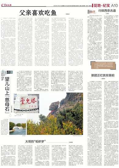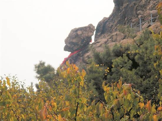 山脚下的停车小广场上,竟然还有个母爱文化邮局。这个名称可不是自封的,而是属于中国邮政系统统一规划的。想必这样的邮局,无论在中国,还是全世界,应该都是独一无二的。我们下车沿着小路径直走去,抬眼便是望儿山。与国内外的名岳大山相比,它充其量就是个山丘。平原之中孤山独立,高度其实只有80余米,却不知为何,让人感到伟岸,心生敬仰。可以拾级而上,很快就发现这山的与众不同——山上岩石有的呈红褐色,有的黄色中略带暗红,竟是亿万年前火山爆发后留下的杰作——从地质学上讲,这属于丹霞地貌。