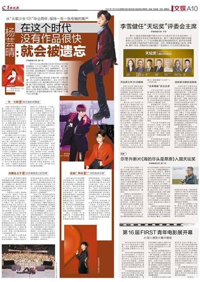 当歌手是杨芸晴从小的梦想。“火箭少女101”解散之后,她顺理成章地以个人歌手身份活动。谈及这两年的心情变化,她说:“在‘火箭’里是团体生活,姐妹们会互相帮助,每个人在自己的领域里做到最好就可以了。但自己单独出来之后会比较辛苦一点,唱歌、跳舞、综艺甚至采访,所有东西都得自己扛下来。这就是成长的一部分吧。但无论是团体生活还是现在一个人活动,我都是快乐的,因为都是在做自己喜欢的事情。”