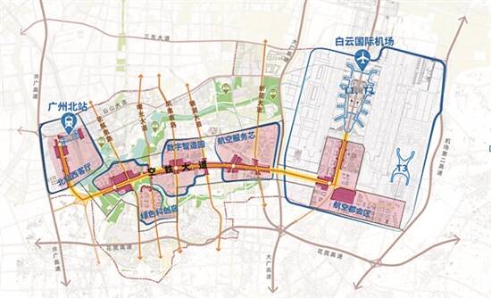 随着花都空铁大道首期主线全部贯通,直接将双枢纽的通行时间压缩至15分钟,并将沿线骨干道路串联起来,形成“鱼骨形”路网,实现花都南部地区路网高效互联。空铁大道串联起北站商务区、广州白云国际机场、神山轨道交通装配产业园等重点发展区域,是花都区外环交通系统的重要组成部分,将加速空铁双港融合和产业发展,助力打造广州北部交通枢纽、经济枢纽。