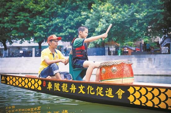 “咚!咚!咚!”天河区车陂涌上,熟悉的龙船鼓响起。顺着声音寻找,一群孩子正在水上学习扒龙舟。“提桨,身体前倾,深呼吸。”教练手把手指导动作,吹一下哨子,孩子们划一下。不远处,一艘救生艇慢慢地跟着龙舟前进,守护孩子们的安全。