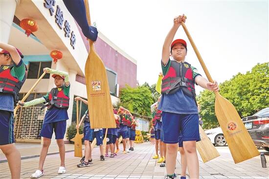 今年暑假,车陂村的“育龙计划”正式落地,面向周边小学招生,传授龙舟文化以及扒龙舟技巧。30多摄氏度的高温,挡不住孩子们的热情。10岁的曾昱彤充满期待,主动报名。小时候,爸爸带她看过村里的龙舟赛,“场面好壮观,看起来很有意思。”