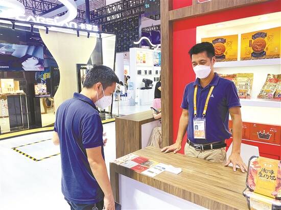 “本次参加消博会,除了带来我们的经典拳头产品——二八腊肠以外,我们还带来了新品自热腊味煲仔饭,这几款产品都受到了许多关注。”作为中华老字号、中国驰名商标以及广东省、广州市非物质文化遗产广式腊味制作技艺代表,皇上皇来到了本届消博会。