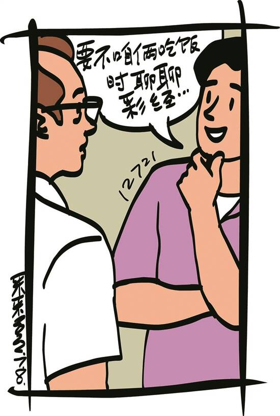 几天后,回到单位的小赵和小张,在办公室遇见找老李去餐厅的王石,他俩面面相觑,不知两人有什么特殊关系。老李看见他们疑惑的样子,便给他们介绍说,王石是他的小彩友,两人已成为忘年交。