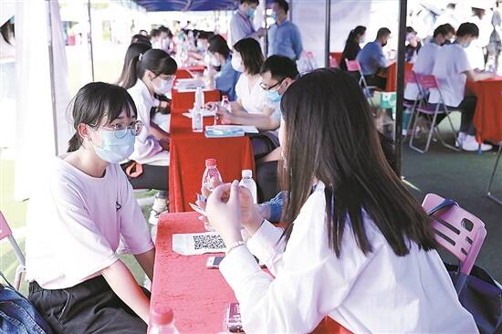 招聘会现场,毕业生向心仪企业问询 图/岳青