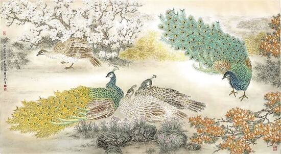 孔雀被称为“百鸟之王”——凤凰化身的吉祥鸟,象征着优雅与才华、吉祥与华贵。百花盛开,寓意花开富庶,象征着国泰民安、繁荣昌盛。孔雀悠然自得地沐浴在花丛间,铺展开和谐相融的自然画卷。