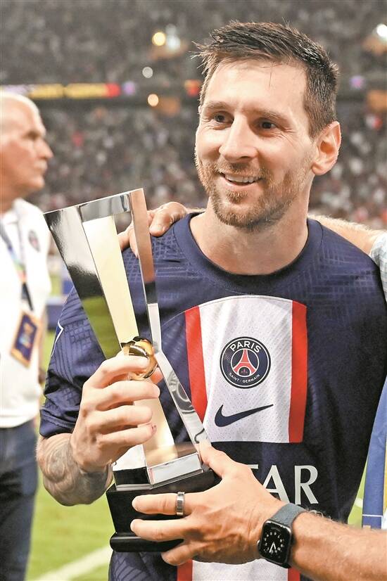 法国超级杯昨天在以色列特拉维夫上演,法甲冠军巴黎圣日耳曼以4比0轻取法国杯冠军南特。梅西不仅获得职业生涯第41个冠军头衔,还被评为当场最佳球员。如果再获得两项冠军,梅西就将追平前巴塞罗那队友阿尔维斯(43冠)并列足坛历史最高。