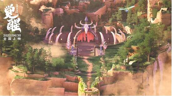 影片构建了地上和地下两个世界,设计了“螺旋山”“爆爆蛋”“枯树丛”“陨石雨”等奇幻元素,还为部落文化创造出特定的文字、语言、服饰、仪式、部落活动等,以加深观众对电影世界观的信念感。