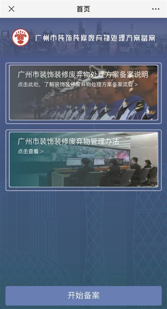 根据《广州市装饰装修废弃物管理办法》,装饰装修工程的施工单位应当依据《中华人民共和国固体废物污染环境防治法》有关规定,编制装饰装修废弃物(即“装修垃圾”)处理方案,采取环境污染防治措施,并报区城市管理行政主管部门备案。为方便施工单位和市民个人就装修垃圾处理方案进行报备,即日起施工单位装饰装修工程从业人员可以登录“广州城管”微信公众号,点击“便民服务-装饰装修废弃物”(首次进入时会提示您进行微信授权操作,填写手机号码,获取短信验证码后填入完成绑定)后,点击“开始备案”,填写单位所属辖区及街道,地址定位信息、装饰装修施工单位名称、联系人姓名和联系电话、预计排放时间、排放量等基本信息后提交报备。提交成功后,装饰装修工程所属地区城管部门将会对备案资料进行审核,备案结果将通过短信或者微信通知申请人。