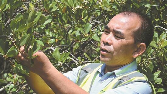 在湛江蔚蓝海洋与红褐陆地邂逅的潮间带,伫立着一段段绿色的“海上长城”——红树林。湛江廉江高桥红树林管理站站长林广旋守护红树林已有20个年头。近年来,看着红树林不断得到保护、修复、发展,他喜上眉梢。在他眼里,红树林精神呼应湛江发展的每一个潮涨潮落,与湛江一脉相承,建设红树林之城彰显了湛江的绿色发展决心。