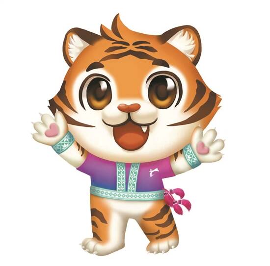 以韶关华南虎为原型的吉祥物“抱抱虎”身着瑶族服装