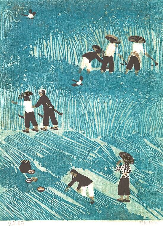 收麻季节(版画) 郑爽 1962年