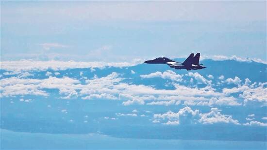 5日,中国人民解放军东部战区空军赴台岛周边实施演训任务。这是战机在执行抵近慑压任务(视频截图) 新华社 发