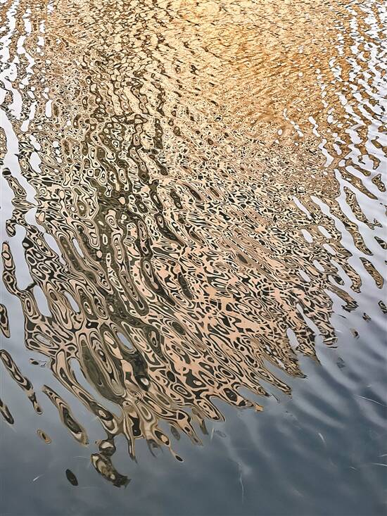 傍晚,在武汉水果湖边漫步。落日余晖,湖畔的白色楼房倒映在湖面上,在微风中形成了奇特的光影。大自然,是最伟大的艺术家!