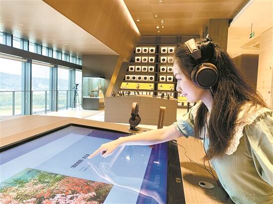 广州国家版本馆还利用数字技术,通过专业设备,对留声机所播放的乐曲进行收音并制作成音频,让版本“活化”起来。参观人员只需要通过位于展厅中央的4台“数码点唱机”,按需要选择唱片和歌曲,戴上耳机,按下按钮,就可以欣赏到展览中的所有黑胶唱片选段,感受百年之声的历史厚重感。