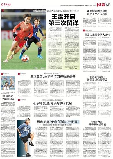 2022年8月11日/星期四/体育新闻部主编/责编 赵亮晨 / 美编 张江 / 校对 彭继业