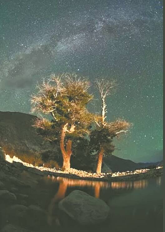 7月30日,新疆巴州和静县克尔古提村夜空中的流星划过 图/视觉中国