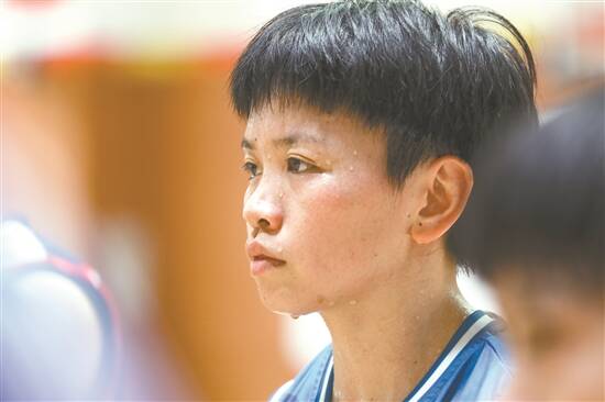 轮椅篮球队训练强度大,汗珠挂满了林穗玲的脸庞