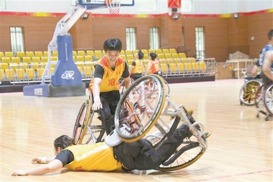 目前,广东省女子轮椅篮球队共有13名在训队员,其中5名是老运动员。“她们都是国家队主力,我们通过以老带新,将老队员的比赛经验、意识和技术融入日常训练中,带动新队员一起进步。”陈琦说。